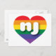 This postcard features a heart with a rainbow pride design and the bold, white, lower case letters nj, a playful abbreviation for New Jersey, the garden state. The reverse side of the postcard is blank, awaiting your personalised text or handwritten sentiments. Show your true colours, support marriage equality, and celebrate gay pride.