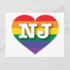 This postcard features a rainbow pride heart containing the white, boldface, capital letters NJ, the official abbreviation for New Jersey, the garden state. The reverse side of the postcard is blank, awaiting your handwritten sentiments or customised text. Show your true colours, support marriage equality, and celebrate gay pride.
