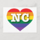 This postcard features a rainbow pride heart containing the bold, white, capital letters NC, the official abbreviation for North Carolina, the tar heel state. The reverse side of the postcard is blank, awaiting your personalised text or handwritten sentiments. Show your true colours, support marriage equality, and celebrate gay pride.