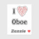 Display your love of music and the oboe with these cool I Heart music stickers! A great gift for music teachers, musicians, or music students! The heart is made of treble clefs, bass clefs, and various music rhythm notes all in the shape of a red heart. Keep the text as is or customise to reflect what music instrument, group, or ensemble you love!