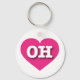 This keychain features a vibrant hot pink heart containing the bold, white, upper case letters OH, the official abbreviation for Ohio, the buckeye state.