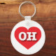 This keychain features a vibrant red heart containing the bold, white, upper case letters OH, the official abbreviation for Ohio, the buckeye state.