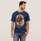 I give wanted to give this a 4 instead of a 5 because these Basic DARK T0shirts run unexpectedly SLIM or Narrow. Which is great if you do not have a potbelly, but I have a paunch. It isn't the shirt's fault that I've got a beer belly. The design and shirt itself is a quality cotton shirt. The color is more of a deep purple, but still a very pretty color. The Basic DARK T-shirts run a bit SLIMMER than the Basic Ts. The neck is a fraction narrower (or seems to be narrower) also. I'm a paunchy middle-aged woman and my neck is 12 inches (31cm) thick and the neckline fell about the same as in the photo of the man, and I had the desire to tug it a bit. So if you're a thick necked man or like loose shirts, be aware these are slimmer shirts. Once I get rid of my lockdown paunch it'll look great. The shirt washed well in cold water with no apparent bleeding. We don't have a dryer, so it hung dry. Did not shrink. Love the colors and the design. The design looks smaller on my shirt than it does on the model on-line. But still, it looks good on the shirt. The printing looks as it does on the model, just the size seems fractionally smaller. Washed garment in cold water, hung dry and design appeared unaffected.
