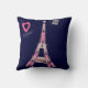 I love Paris design pattern throw pillow. Eiffel tower, hearts, postage stamp and a French cat. Very French, very Paris.