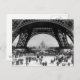 Vintage photo of the Eiffel Tower in Paris from early 20th century. Perspective is close to the base of the tower. black and white photo.