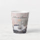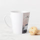 I love Paris latte mug with a cute white motor scooter, and a little pink heart. For those who truly love Paris. A souvenir for those who have visited Paris, the city of light. Cafe with tables and chairs and pink flowers on awning.