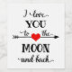 Personalise with a name - I love you to the moon and back in mixed script and uppercase serif font lettering in black with a red accent heart shot with a black arrow. Use the template to change YOU to a personal name.