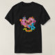 I give wanted to give this a 4 instead of a 5 because these Basic DARK T0shirts run unexpectedly SLIM or Narrow. Which is great if you do not have a potbelly, but I have a paunch. It isn't the shirt's fault that I've got a beer belly. The design and shirt itself is a quality cotton shirt. The color is more of a deep purple, but still a very pretty color. The Basic DARK T-shirts run a bit SLIMMER than the Basic Ts. The neck is a fraction narrower (or seems to be narrower) also. I'm a paunchy middle-aged woman and my neck is 12 inches (31cm) thick and the neckline fell about the same as in the photo of the man, and I had the desire to tug it a bit. So if you're a thick necked man or like loose shirts, be aware these are slimmer shirts. Once I get rid of my lockdown paunch it'll look great. The shirt washed well in cold water with no apparent bleeding. We don't have a dryer, so it hung dry. Did not shrink. Love the colors and the design. The design looks smaller on my shirt than it does on the model on-line. But still, it looks good on the shirt. The printing looks as it does on the model, just the size seems fractionally smaller. Washed garment in cold water, hung dry and design appeared unaffected.