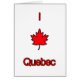 A variation on the I Heart theme. The image uses a Canadian maple leaf in place of the normal heart symbol. This design says "I (Canadian maple leaf) Quebec. The lettering and leaf symbol are red with a black border or stroke. This makes a great gift for anyone who is a proud Canadian and Quebecer.