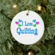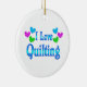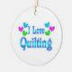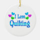 Quilting lovers can show their love with this shiny blue design with hearts and the words - I Love Quilting. Makes a great gift for a quilter.