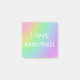 This sticky note design is a beautiful gradient of pastel rainbow colours and fun words with a heart.
