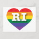 This postcard features a rainbow heart containing the bold, white, capital letters RI, the official abbreviation of Rhode Island, the ocean state. Show your true colours, support marriage equality, and celebrate gay pride.