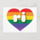 This postcard features a rainbow pride heart with the bold, white, lower case letters ri, a playful version of the abbreviation for Rhode Island, the ocean state. The reverse side of the postcard is blank, awaiting your handwritten sentiments or customised text. Show your true colours, support marriage equality, and celebrate gay pride.