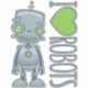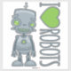 Vector cartoon illustration of a cute and happy little robot with I Love Robots text. Keywords: robot, droid, android, machine, future, happy, friendly, cute, humour, cartoon, love, adorable, adorbs, silly