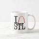 Iconic "I 'Heart' Saint Louis" graphic on a coffee mug. Features an image of the St Louis Gateway Arch instead of a heart.
