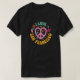 I give wanted to give this a 4 instead of a 5 because these Basic DARK T0shirts run unexpectedly SLIM or Narrow. Which is great if you do not have a potbelly, but I have a paunch. It isn't the shirt's fault that I've got a beer belly. The design and shirt itself is a quality cotton shirt. The color is more of a deep purple, but still a very pretty color. The Basic DARK T-shirts run a bit SLIMMER than the Basic Ts. The neck is a fraction narrower (or seems to be narrower) also. I'm a paunchy middle-aged woman and my neck is 12 inches (31cm) thick and the neckline fell about the same as in the photo of the man, and I had the desire to tug it a bit. So if you're a thick necked man or like loose shirts, be aware these are slimmer shirts. Once I get rid of my lockdown paunch it'll look great. The shirt washed well in cold water with no apparent bleeding. We don't have a dryer, so it hung dry. Did not shrink. Love the colors and the design. The design looks smaller on my shirt than it does on the model on-line. But still, it looks good on the shirt. The printing looks as it does on the model, just the size seems fractionally smaller. Washed garment in cold water, hung dry and design appeared unaffected.