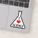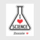 Sticker featuring the text "I love (red heart) science" inside a black outline of an Erlenmeyer flask.
