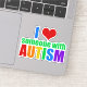 A beautiful autism awareness sticker in pretty rainbow colours for friends and family of someone who is autistic. I Love Someone with Autism. A cute gift for an autism mum, dad, grandma, or grandpa.