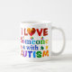 Inspirational quote of “I Love Someone with AUTISM” and a beautiful heart with Autism puzzles to support autistic children and their families for a bright future.