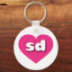 This keychain features a vibrant hot pink heart containing the bold, white, rounded, lower case letters sd, a playful abbreviation for South Dakota, the Mount Rushmore state.