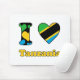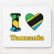 Ik houd van Tanzania muismat. I heart Tanzania. Afbeelding van een hart met de Tanzaniaanse vlag erin. De kleuren zijn groen, geel, zwart en blauw.