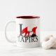 Instead of the ordinary design of "I Heart Tapirs”, the 'Heart' is changed to a striking illustration of a red tapir. A bit of trivia: A group of tapirs is called a 'candle'.