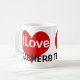 I like to buy and review my own work to ensure you get an outstanding product and I’m happy to give the Primary Colours Beach Football Mug 5 stars because it meets my expectations completely. Pleased with it I am. Zazzle mugs are well fabricated, microwave and dishwasher safe. And this yellow red and blue panoramic wraparound motif is sealed with a durable and sparkling Orca polished gloss glaze finish. It’ll never rub off! The size and energy of two jostling figures and a burly goal keeper fit the mug's circular shape well. There's momentum in the carousel effect as the two jostling figures repeat and move right around the mug and meet a burly goal keeper. Big sharp original images precisely drawn and delicately captured in blue and red with plenty of bright yellow! An ideal gift for anyone who plays ball! A fun gift for all beachball and football fans. A pair with the Retro Grey-Grain Beachball Player Mug. Available in two sizes and several styles including Black Ringer, Travelling, and Stern. Go have a peek!