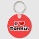 I heart tennis gifts. The classic way to express your love for tennis. Cute cartoon style key chain for kids and adults. Custom background color.