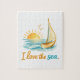 Turn playtime into a relaxing experience with this 8" x 10" custom puzzle featuring a peaceful ocean sunset sailboat illustration and the phrase “I Love the Sea.” Printed in vivid, full color, the artwork comes to life as you piece it together.