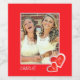 A red and white coloured photo frame, cute red hearts and the words “I love U” in white text.