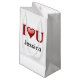 Valentine's day gift bags with I heart u in 3D red text and space for the name of your choice. Gift bag is available in multiple sizes. Great for family and friends or that special someone.