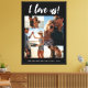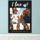 Modern black and white "I love us" brush script photo collage canvas with personalised name and year.