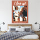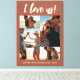 Modern terracotta and white "I love us" brush script photo collage canvas with personalised name and year.