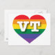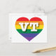 This postcard features a rainbow pride heart overlaid by the bold, white, capital letters VT, the official abbreviation for Vermont, the green mountain state. Show your true colours, support marriage equality, and celebrate gay pride.