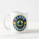 I Love Vermont State Flag and Map. Taking its inspiration from the state flag, this design features a blue, white yellow and green colour scheme, and red hearts. This frames the central motif of the state flag, behind which is incorporated the state map. With cool distressed typography featuring the phrase 'I LOVE VERMONT'.