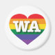 This magnet features a rainbow pride heart overlaid by the bold, white, capital letters WA, the official abbreviation for Washington, the evergreen state. Show your true colours, support marriage equality, and celebrate gay pride.