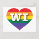 This postcard features a rainbow heart containing the bold, white, capital letters WI, the official abbreviation for Wisconsin, the badger state The reverse side of the postcard is blank, awaiting your handwritten sentiments or customised text. Show your true colours, support marriage equality, and celebrate gay pride.