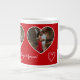 This one of kind design jumbo mug features 3 of your favorite photos in heart shapes. Add your amazing photos for a beautiful, unique gift. A special way to celebrate your love! Always loved by the recipient. Shop today for this extra special gift! PHOTO TIP: To get your photos perfect within the hearts Click "Personalize this template" then "Edit Using Design Tool" then click on any heart choose "Change Image" and place your image and move it around until it's perfectly placed. Repeat for other hearts. Super Easy!