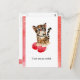 This cute cartoon watercolor ocelot cat is sitting on a big red pink heart with that funny love look. Extra watercolor graphics as borders have been added to this postcard in bright red.(you can delete if you desire, simply hit clear) Text reads: "I love you an ocelot On back is a big heart and a tiny ocelot with text you can edit: "Not just a oce-little, but an ocelot!". Colours are brown tan black pink and red, with blue eyes. You can edit and change all aspects of this design. Hit the customise button to change the text font style or size.