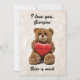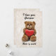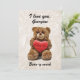 Cute Teddy Bear holds a heart engraved with the message "I love you." Plus, your text says the same along with a name and "Bear-y much." Cute card to give to a child. But can also work well with adults. "Happy Valentine's Day" message on the back of the card. Selecting “Personalize this design” offers you several edit options to easily change the text (wording, plus type font, color, size, position) and to possibly edit the design elements. You may also want to scroll down to the section “Transfer design to a product” for a few suggestions about other items this design can be used on.
