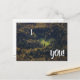 Postcard of a heart shape of grass in a forest in autumn colours on the hills around lake Bled in Slovenia with the text 'I love you!'.