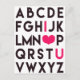 NewParkLane - Cute Postcard, with the alphabet in modern, black typography and the letters for 'I Love You' in hot pink with a big heart.