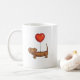 This little Wienerdog is having a red balloon wrapped around his body. A very cute gift idea, if you've someone in mind who loves dogs and maybe wienerdogs aka dachshunds in particular. This illustration makes everybody smile and makes a very thoughtful gift for someone you love. Since it is love themed this dachshund design makes a perfect valentines day gift. I LOVE YOU