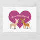 I love you deer-ly! Cute deer couple with a heart in the background and a funny pun.