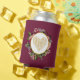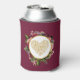 A can cooler with a fancy golden heart. Decorative swirls and shapes with the words "I Love You" written in fancy script font. Surrounded by a circle frame with a faux gold foil border. Behind the circle frame, are some pretty florals in red, pink and purple with green leaves. Violet red background.