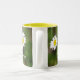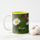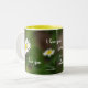 Tall, yellow and white mug with daisies in garden and text "I love you" and "I love you forever and always."