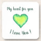 I Love You Green and Blue Heart Valentine's Day Coaster