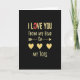 This greeting card features the message “I LOVE YOU FROM MY HEAD TO MY TOES” on a deep black background. The words are in worn-looking gold letters, centered and easy to read. “I LOVE YOU” sits at the top, and the “O” in “LOVE” is a bright red circle that stands out ❤️. Below that, “FROM MY HEAD” appears in the same gold lettering, followed by a simple gold arrow that points downward. Near the arrow is the small word “to” in a flowing cursive style, leading your eye to three gold hearts. At the bottom, “MY TOES” finishes the line in gold, tying the whole message together. It feels meaningful because it says you care about someone completely, from start to finish, in a sweet and direct way 🥰. Hope it helps you share Valentine’s Day sentiments with someone you care about.