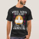 I give wanted to give this a 4 instead of a 5 because these Basic DARK T0shirts run unexpectedly SLIM or Narrow. Which is great if you do not have a potbelly, but I have a paunch. It isn't the shirt's fault that I've got a beer belly. The design and shirt itself is a quality cotton shirt. The color is more of a deep purple, but still a very pretty color. The Basic DARK T-shirts run a bit SLIMMER than the Basic Ts. The neck is a fraction narrower (or seems to be narrower) also. I'm a paunchy middle-aged woman and my neck is 12 inches (31cm) thick and the neckline fell about the same as in the photo of the man, and I had the desire to tug it a bit. So if you're a thick necked man or like loose shirts, be aware these are slimmer shirts. Once I get rid of my lockdown paunch it'll look great. The shirt washed well in cold water with no apparent bleeding. We don't have a dryer, so it hung dry. Did not shrink. Love the colors and the design. The design looks smaller on my shirt than it does on the model on-line. But still, it looks good on the shirt. The printing looks as it does on the model, just the size seems fractionally smaller. Washed garment in cold water, hung dry and design appeared unaffected.