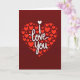 This Valentine's Day card shows a large heart shape made from many small red hearts on a deep maroon background. In the middle, the words “I love you” are written in flowing white lettering that stands out right away. The small hearts vary in size and sit close together, with light shadowing that gives them a slight raised look. A tiny white heart appears above the “I,” like a little accent that draws your eye. The overall look feels warm and romantic, with the reds and whites popping against the darker background. There aren’t any characters, but the heart pattern and the message make the card feel full of affection 💘❤️. It’s an easy, loving way to share Valentine’s Day sentiments with someone special.